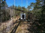 Det blev ny strålkastare med rörelsedetektor monterat på stugan och kontroll av antenner och kablar. Stora jobbet var utbyte av staglinor på 2m-yagin som hade gått sönder. |