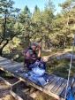 Det blev ny strålkastare med rörelsedetektor monterat på stugan och kontroll av antenner och kablar. Stora jobbet var utbyte av staglinor på 2m-yagin som hade gått sönder. |